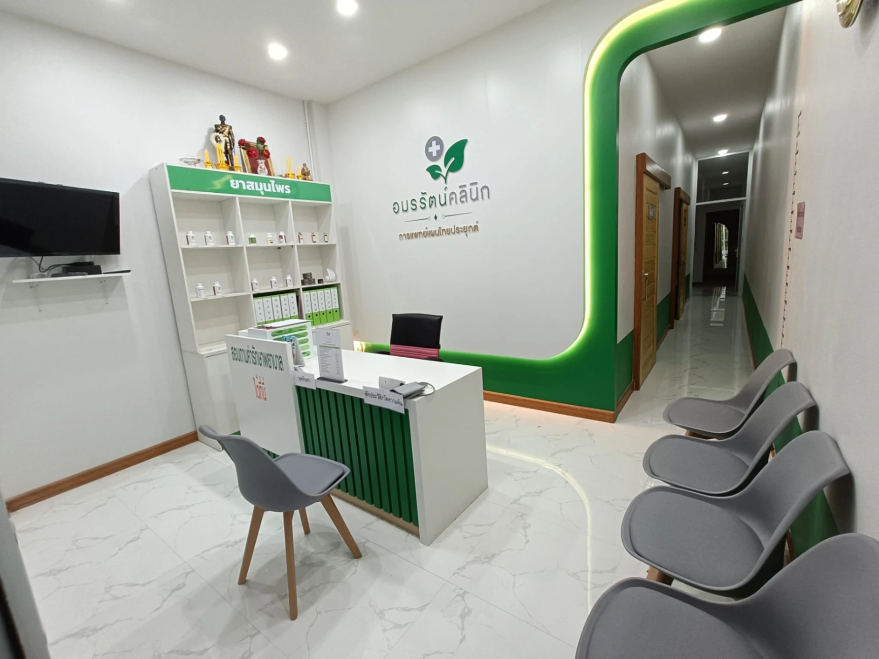 อมรรัตน์คลินิก ให้บริการตรวจและรักษาอาการปวด นวดกดจุด ประคบสมุนไพร แช่เท้าสมุนไพร ยาสมุนไพร ตอกเส้น อบไอน้ำสมุนไพร โดยทีมแพทย์ผู้เชี่ยวชาญ ภายในคลินิกตกแต่งสไตล์ Modern Minimal สร้างบรรยากาศที่สะอาด โปร่งโล่ง และผ่อนคลายให้แก่ผู้มาใช้บริการ สามารถจองคิวออนไลน์หรือสอบถามผ่านเว็บไซต์และโซเชียลของคลินิกได้ตามวันเวลาที่เปิดทำการ