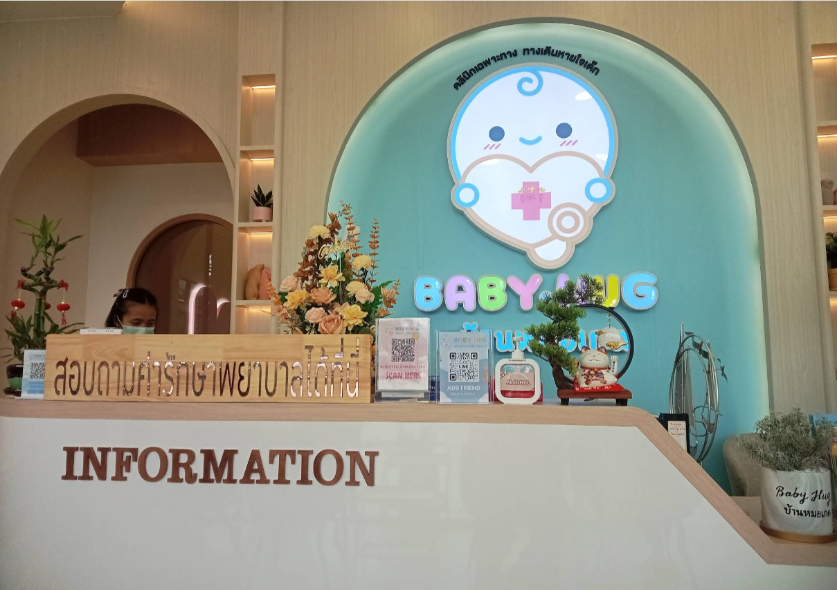 Baby-hug บ้านหมอเกด ให้บริการตรวจรักษาและดูแลสุขภาพเด็กอย่างครบวงจร ดูแลโรคระบบทางเดินหายใจและโรคทั่วไปในเด็ก เสริมภูมิคุ้มกันและฉีดวัคซีนตามวัย พร้อมให้คำปรึกษาด้านโภชนาการและติดตามพัฒนาการตามช่วงวัย โดยแพทย์ผู้เชี่ยวชาญ คลินิกออกแบบสไตล์ Minimal เพื่อสร้างบรรยากาศอบอุ่นและดึงดูดความสนใจของเด็กๆ สามารถจองคิวออนไลน์หรือสอบถามผ่านเว็บไซต์และโซเชียลของคลินิกได้ตามวันเวลาที่เปิดทำการ