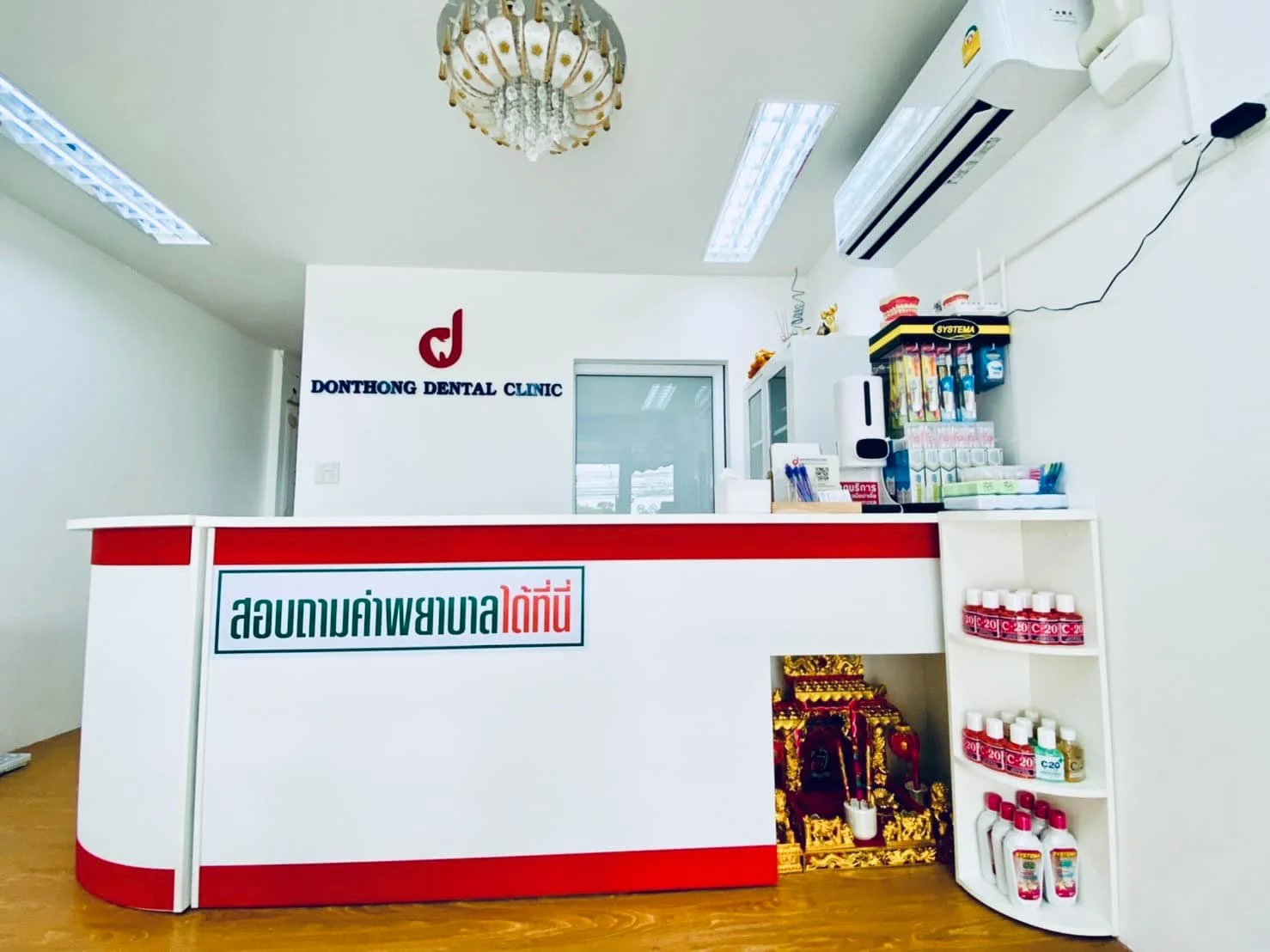 DONTHONG DENTAL CLINIC เดินทางสะดวกใกล้ตลาดสดดอนทอง ให้บริการตรวจสุขภาพช่องปาก ขูดหินปูน อุดฟัน ถอนฟัน รักษารากฟัน จัดฟัน ฟอกสีฟัน ใส่ฟันปลอม โดยทีมทั